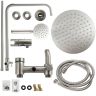 Смеситель + стойка душевая "тропический душ" с двумя лейками в ванную, матовый хром.