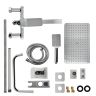 Душевая, регулируемая по высоте стойка с присоединением к корпусу смесителя и дополнительным креплением к стене и большой круглой лейкой с эффектом тропического душа.