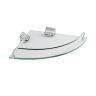 Подвесная однаэтажная угловая полка для ванной, из прочного стекла, толщиной 5 мм с полированными краями о которые невозможно порезаться, с надежной фиксацией к стене с помощью крепления из металла, с хромированным покрытием.