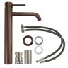Смеситель для раковины, цвет под медь, высокий литой корпус, из нержавеющей стали марки 304, с изогнутым изливом, ручка шток, шаровый.