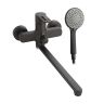 Смеситель в ванную / душевую комнату с длинным, плоским изливом, графитового цвета, тяжёлый, массивный корпус, шаровый с дивертором м/к на корпусе.