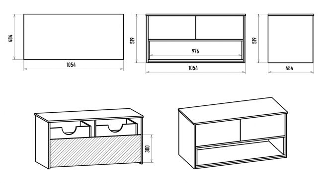 Размер мебели, мм (ШxГxВ) 1054x484x520
