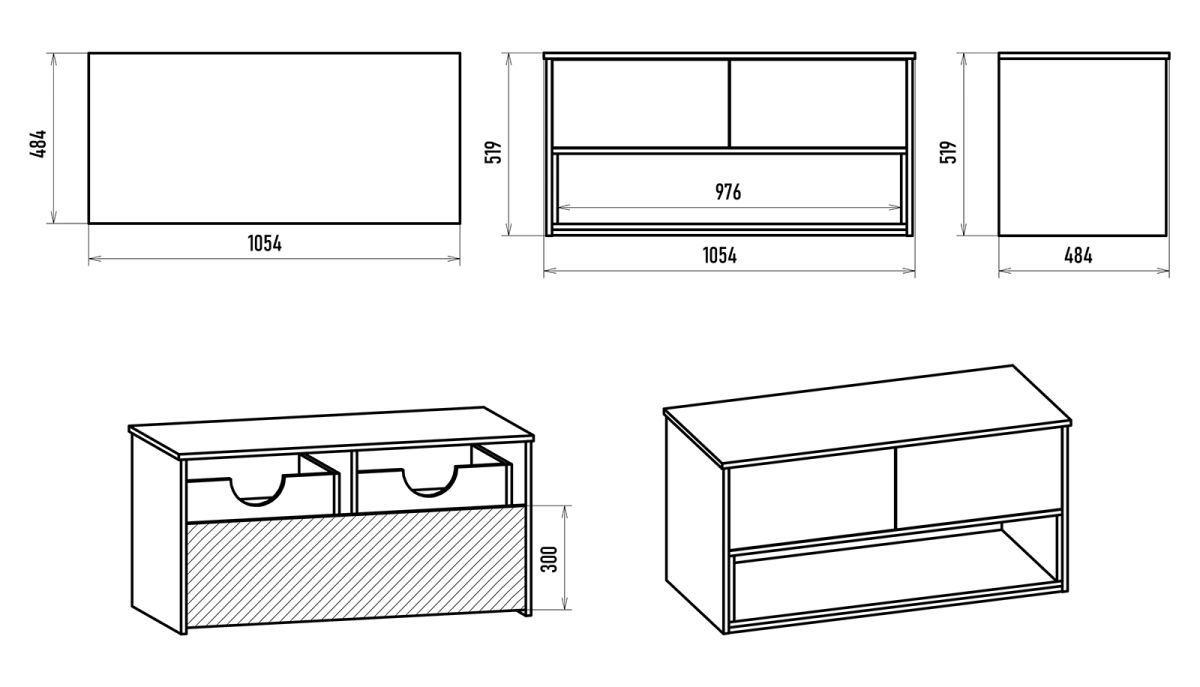 Размер мебели, мм (ШxГxВ) 1054x484x520
