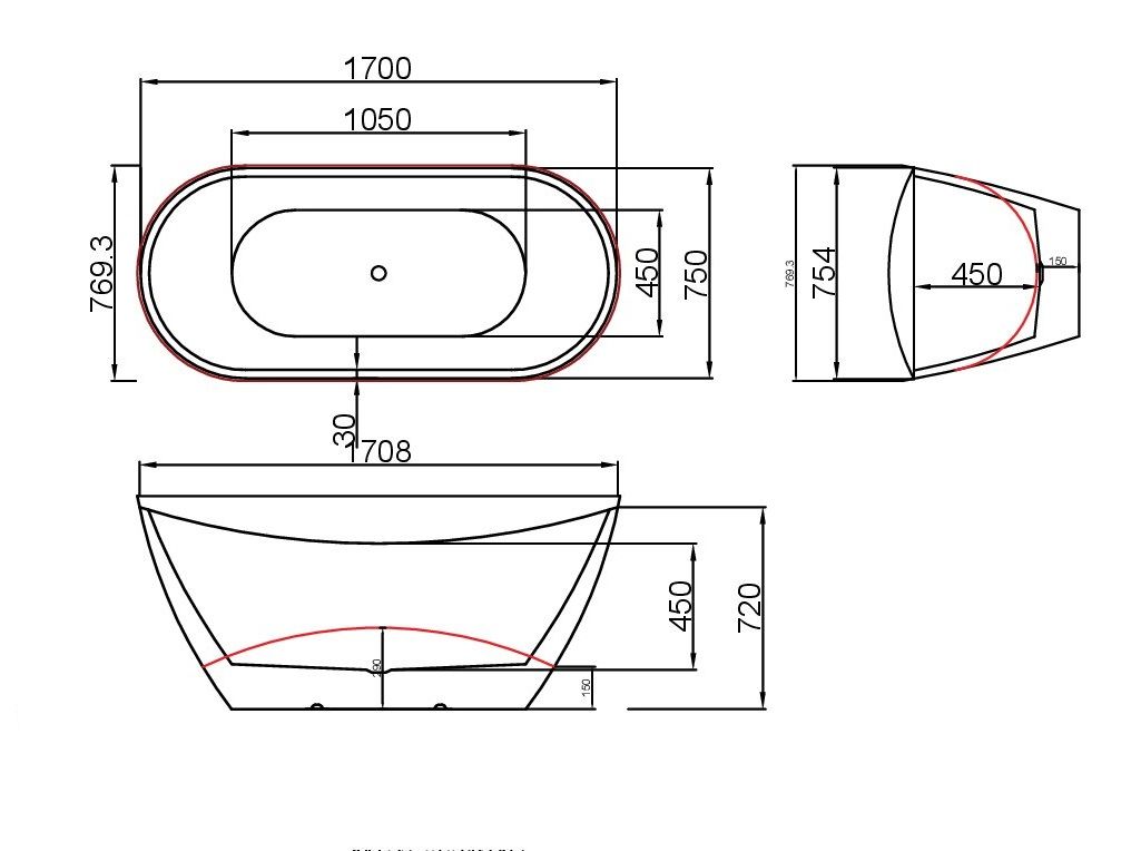 Ванна акрил ZILI DO WB-6014А 1700*750*720мм