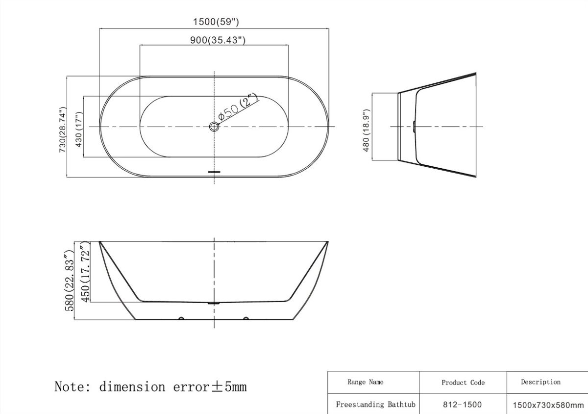 Ванна акрил ZILI DO WB-812 1500*730*580мм