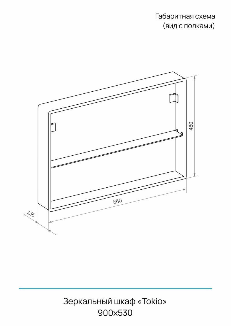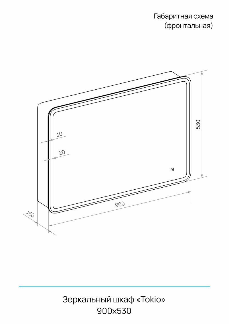 Зеркальный шкаф TOKIO с розеткой ШВГ: 900*530*160мм